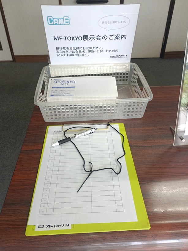 そして現在、MF-Tokyo 2025 の招待状を弊社受付カウンターでも配布中です! ご来社の際は、ぜひお気軽にお持ち帰りください。招待状をご希望の方は、簡単なご記入だけでお渡し可能です。