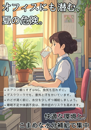 ちょっとした意識で、体調管理はぐっと楽になります。 「快適な環境と、こまめな水分補給で集中」——まさに今の季節にぴったりの言葉です。